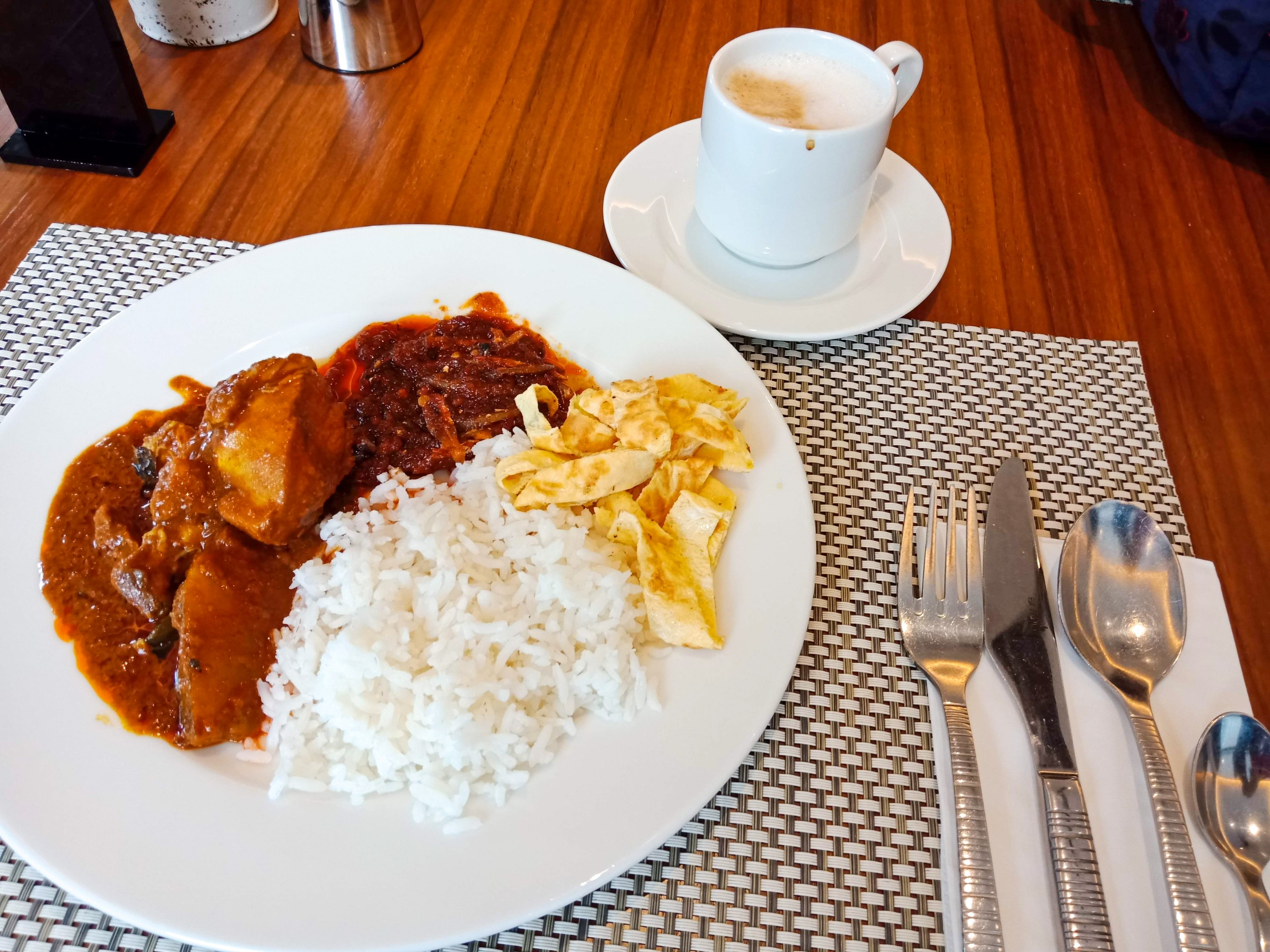 There’s a wide choice of Malaysian food as well. Shafa’s mom & Yusof chose the Nasi Lemak with Sambal Ikan Bilis, Rendang Ayam & Omelette.